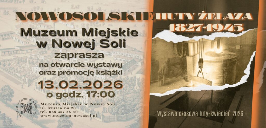 Na początku XIX wieku grupa berlińskich przemysłowców podjęła decyzję o założeniu w Nowej Soli zakładu hutniczego. Czynnikiem decydującym o wyborze tej lokalizacji było nadodrzańskie położenie miasta oraz zalegające płytko w okolicy pokłady rudy darniowej. Możliwość eksploatacji surowca niezbędnego do wytopu żelaza na skalę przemysłową oraz dostępność opału z Puszczy Tarnowskiej przyspieszyło rozwój huty, która już po roku od jej założenia w 1827 r. rozpoczęła produkcję. Zakład wprowadził miasto w epokę rewolucji przemysłowej XIX stulecia. Do 1945 r. huta rozwinęła się w kombinat hutniczy o znacznym potencjale i wpływie na losy Nowej Soli. Sukces pierwszego zakładu zachęcił w połowie XIX stulecia innych przedsiębiorców do uruchomienia drugiej huty i mniejszych zakładów, czyniąc z miasta znaczący w regionie ośrodek metalurgiczny. Na wystawie w syntetyczny sposób zaprezentowano historię powstania i rozwoju nowosolskich hut oraz ich wpływ na dzieje miasta w XIX i XX wieku. Wystawę wzbogacają przykłady wyrobów hutniczych ze zbiorów Muzeum oraz od osób prywatnych. Wernisażowi towarzyszyć będzie promocja publikacji pt. „Zakłady hutnicze w Nowej Soli, cz. I, 1827-1945”. Wystawa będzie dostępna dla zwiedzających do końca kwietnia 2026 roku.